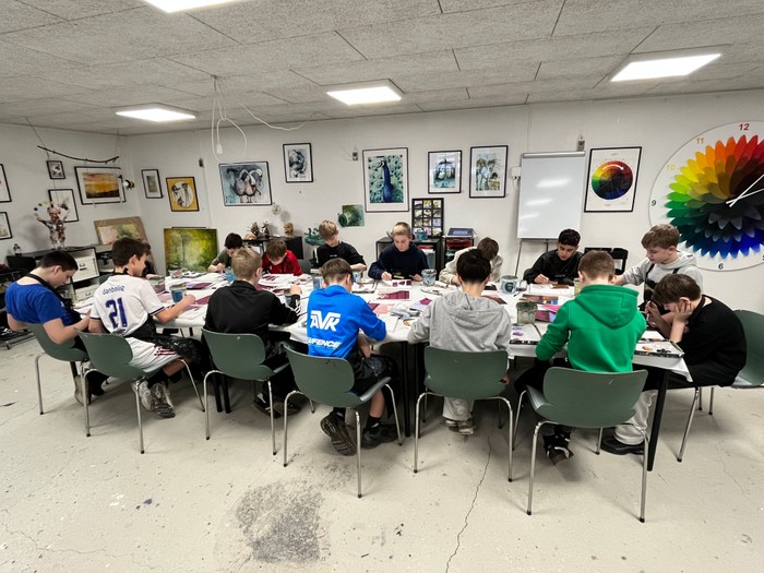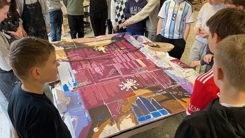 Alle de individuelle malerier er til sidst blevet samlet på en sort plade. Først her får konfirmanderne mulighed for at se det samlede motiv.
